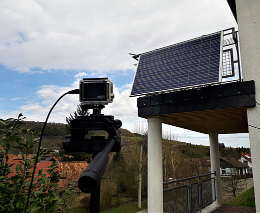 Mit dem dritten Tag im April hat die Dachanlage schon mehr Strom erzeugt als im gesamten Dezember! Heute war der „schlechte“ Osten mal wieder ein gutes Stück ertragreicher als die Westseite. Für meine Kollegin habe ich heute die Dienst-GoPro in Stellung gebracht. Zwischen 9 und 13 Uhr wurden rund 1450 Fotos des Balkonmoduls im 10-Sekunden-Takt aufgenommen. Zu einem Zeitraffer zusammengefügt, wird das demnächst bei Leben mit der Energiewende TV im Livestream zu bewundern sein. In den vier Stunden hatte das einzelne Modul nur 0,143 Wattstunden produziert, weil es bis gegen 11 Uhr noch im Schatten hängt.