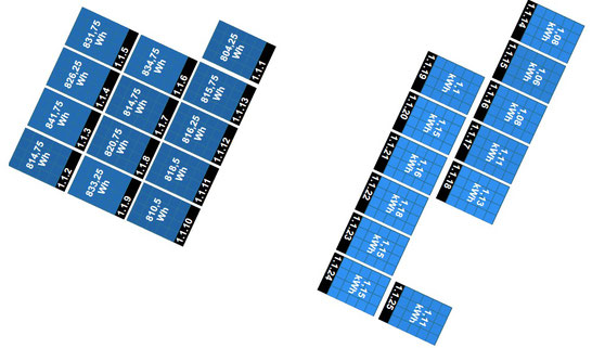 Das Filmchen zeigt die gestrige Tagesstromproduktion der einzelnen Dachmodule in 15minütigen Sprüngen. Die SolarEdge-Optimierer machen es möglich.