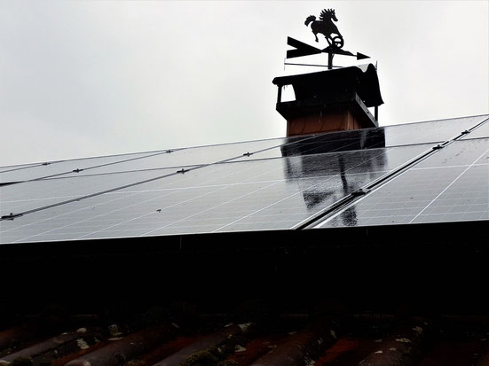 Die 7,125 kWp auf dem Dach produzierten zwischen 7:30 und 19:30 Uhr Strom mit dem Maximum um 14:45 Uhr. Erzeugt wurden 15,7 Kilowattstunden, von denen 11 kWh ins Netz gingen. Von dort bezogen haben wir 6 kWh; davon 4 kWh in der Nacht. Die Westseite des Daches war heute etwas besser als die Ostseite. Größere Stromverbraucher waren heute nicht in Betrieb.