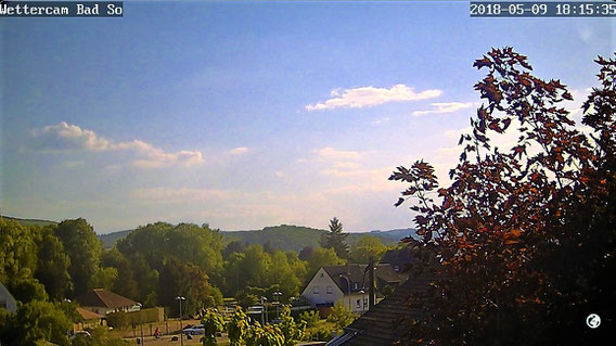 (09.05.2018) Auch heute war der Himmel nochmal blau, den allerdings ab dem frühen Nachmittag ein paar kleine Wölkchen (Foto: Wetter-Webcam Bad Sobernheim) zierten. Modulstart heute um 7:25 Uhr. Die Höchstleistung um 15:43 Uhr. Es wurde die insgesamt 421. Kilowattstunde erzeugt. Der Vatertag wird ab dem Vormittag bedeckt sein, soll den dringend benötigten Regen und vielleicht auch Gewitter bringen.