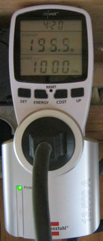 Bei der Recherche über Aquarien und deren Stromverbrauch bin ich erschrocken. Ein Bekannter hat ein 520 Liter-Becken mit asiatischen Süßwasser-Fischen. Er hat den Stromverbrauch von Heizung, Neon-Licht und Pumpe eine Woche lang mit einem meiner Strommesser notiert. Hochgerechnet aufs Jahr kommen wir auf 1279 Kilowattstunden. Jetzt kommt das Messgerät an ein neu eingerichtetes Meerwasser-Aquarium mit Korallen und Fischen (Bild) eines anderen Bekannten. Mal sehen, was das an Strom verbraucht. Und dann wollen wir überlegen, wie sich der Energieverbrauch zumindest etwas senken lässt, z.B. mit LED-Licht. Mitlesende Aquarianer sind eingeladen, energiesparende Tipps zu geben – und: Wir wollen niemandem dieses schöne Hobby verleiden!