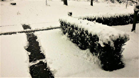 Der Samstag begann mit Schneefall – dicke Flocken fielen vom Himmel, klebten am schräg stehenden Modul, lagen 10 Zentimeter hoch auf dem Boden. Schippen war angesagt. Nach dem Wegwischen der „weißen Pracht“ vom Panel um 9:24 Uhr floss der Strom ins Hausnetz.