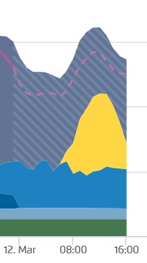 (19.03.2017) Am heutigen Sonntag war es durchgehend bedeckt; das Ergebnis demgemäß mies. Modulstart um 8:11 Uhr. Die Spitzenproduktion habe ich um 11:25 Uhr gesehen – danach war ich allerdings bis zum Abend unterwegs. Die Aussichten für die kommenden beiden Tage sind trübe.