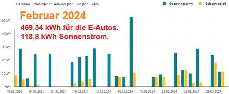 Die beiden Elektroautos wurden mit 285,73 Kilowattstunden – 23,09 Prozent des Stromverbrauchs – geladen.